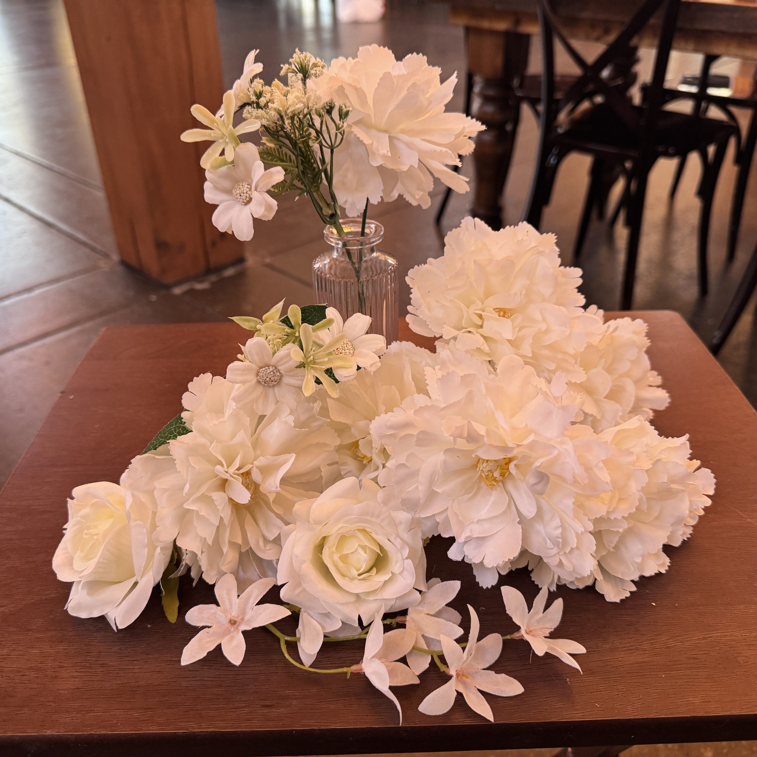 Details Gallery Tan Table Runner: 20 Black Table Runner: 20 Pink Table Runner: 22 Sage Green Table Runner: 20 Dusty Blue Table Runner: 20 Terracotta Table Runner: 20 White Table Runner: 20 Lavender Table Runner: 8 Gold Table Runner: 19 Dark Blue Table Runner: 20 Emerald Green Table Runner: 20 Purple Table Runner: 21 Dark Jade Table Runner: 18 Eucalyptus Strands: 50 Evergreen Greenery: 23 Eucalyptus Pieces: 110 Small Leaf Lighter: 15 Small Leaf Frosted: 50 Light Individual Eucalyptus Pieces: 95 Dark Green Individual Pieces Greenery – mix florals & succulents: 28 Holiday Greenery: 8 Greenery w/ a Hint of Yellow: 30 strands Eucalyptus Garland Full Strands 23 White Roses: 65 Light Pink Roses: 51 Dark Mauve Roses: 63 Mauve Roses: 59 Foam Roses: Champagne: Long Stem Roses: 30 Florals: Champagne: 60 Mixed Florals: Dusty Rose 50 Assorted Purple Florals Mixed Florals: Champange/OffWhite: 38 Mixed Florals: Merlot 74 Mixed Florals: Dusty Light Rose: 40 Mixed Florals: Tan/Terracotta 120 Assorted Pink Florals: 71 White/Sage Bouquets: 4 Premade White Floral Bouquet: 5 Premade Orange Floral Bouquet: 4 Premade Pink Floral Bouquet: 12 Cala Lillies: 30 Lavender Roses: 16 Purple Peonies 13 Red Florals: 25 Light Yellow Florals: 25 Green Chrysanthemums: 24 Blue Chrysanthemums: 24 Purple Lillies: 5 Blue Floral Mix: 86 Blue Peonies: 5 Lavender Florals: 65 White Waterfall Bouquets: 7 Sweetheart Table Swag Ceremony Florals: 2 Feather Vases: 12 Short Bud Vases: 80 Tall Bud Vases: 30 Tea Light Holders: 21 LED pillar candles (thin): 20 Gold Votives: 76 Round gold votives:68 Candlestick (gold): 64 LED Taper Candles: 64 Vases for floating candles ( 3 sizes): 48 each size Wooden Slices: 18 Small Wood Slices: Gold Center Piece: 9 Gold Center Piece: Gold Center Piece: 19 Rustic Center Piece w/ Candle & Greenery: 18 White Lanterns: Small: 4, Large: 8 Lantern Table Numbers: 18 Lantern Table Numbers w/o florals: 1-20 Table numbers (clear): 1-20 Frosted table numbers: 1-20 Clear Rectangular Table Numbers Wooden Script Table Numbers Branded Table Number: 1-14 Metal Buffalos Wood Slice: 1-18 Black & White Table Numbers: 1-16 Paper Table Numbers: 1-18 Table Numbers – frosted gold: 18 Black Framed Table Numbers: 18 Mr & Mrs Black All caps: 1 Mr & Mrs. Gold Glitter: 1 Mr. & Mrs. Wood w/ gold: 1 Mr & Mrs. black script: 1 Mr & Mrs wood script: 1 Gold Chargers: 180 Rose Gold Chargers: 180 Silver Chargers: 180 Navy Plate Chargers: 180 Card Box – frosted w/ gold Card Box: 1 Card Box with sign Black/Wooden Desert Stand: 2 Dessert Stand: 2 Dessert Stand: 1 Dessert Stand: 1 Wooden Cake Display:1 Gold Cake Stand: 1 Metal Cake Stand: 1 White Cake Stand: 1 Display Stand: 2 Gold Dessert Trays: 4 White Dessert Trays 3 White Platters: 3 Silver Platters: 11 Display Stand: 2 Welcome sign w/ greenery Pick a seat Sign Pick a seat not a side with unplugged request: 1 Choose a Seat Sign Unplugged Ceremony Sign Unplugged Ceremony Unplugged Ceremony Unplugged Ceremony Floral Pick A Seat Sign Reserved Sign: 4 Reserved vase w/ Flower: 4 Reserved sign – black: 1 Reserved sign – mini: 6 Cards & Gifts Sign Love is Sweet: 1 In loving memory sign: 1 Memory Sign: 1 Memory Sign: 1 Memory Sign: 1 Memory Sign: 1 Memory Sign: 1 Sign Quantity: 1 Ceremony / Reception Arrows Large Black metal Stand: 1 Small Stand Scrolled: 5 Small Stand Roped: 5 Gold Card Holders: 32 Wooden Card Holders: 8 Flower Girl Baskets: 2 Woven Basket (large): 1 Metal Basket for Glow Sticks: 1 Medium Woven Basket: 1 Small Woven Basket: 1 White Woven Basket: 1 Metal Baskets: 2 Small Wooden Boxes: 12 Metal Cans/Vases: 5 White Boxes for Florals: 2 Arch (florals cannot be removed) Natural Wood Accent Table Black Metal Accent Table Birthday Parties Perfect Venue For A Party! Book Specials Events Event Venue For Any Event! Book Banquets Banquet Event Venue! Book