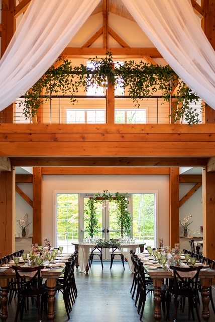 - Custom -made Farm Tables and cross back chairs for reception up to 180 people.
